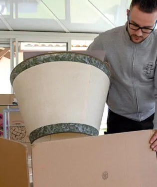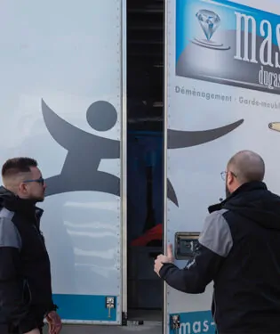 Tôt le matin, les déménageurs se présentent chez Jeanine L. Café, présentation, état des lieux et c’est parti… Pendant qu’un professionnel emballe la vaisselle, verrerie et objets fragiles, le second s’occupe des vêtements sur cintres, du linge et des objets non fragiles conditionnés en carton. Vient ensuite le démontage et la protection des mobiliers sous couvertures molletonnées, de la literie sous housses spécifiques, du téléviseur et de l’électro-ménager. Tapis, rideaux, tentures, lustres… tout est protégé et chargé dans le véhicule. Dernière visite jusqu’au sous-sol pour s’assurer de ne rien avoir oublié et les portes se referment sur un chargement bien arrimé.